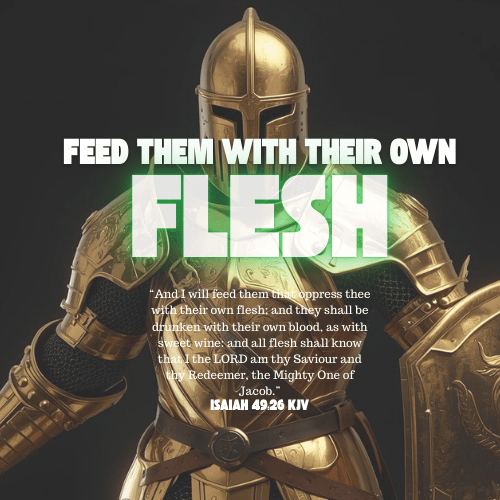 “And I will feed them that oppress thee with their own flesh; and they shall be drunken with their own blood, as with sweet wine: and all flesh shall know that I the LORD